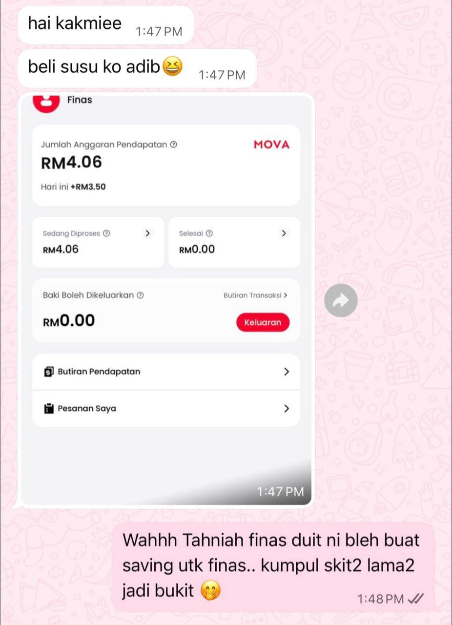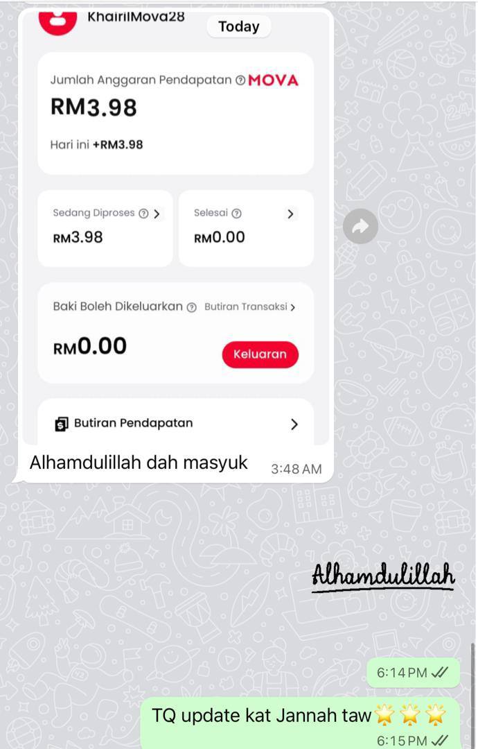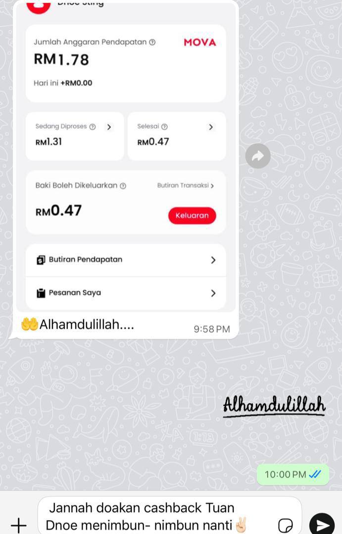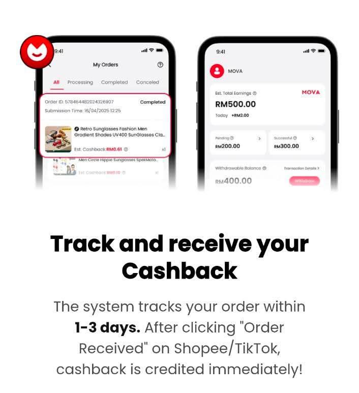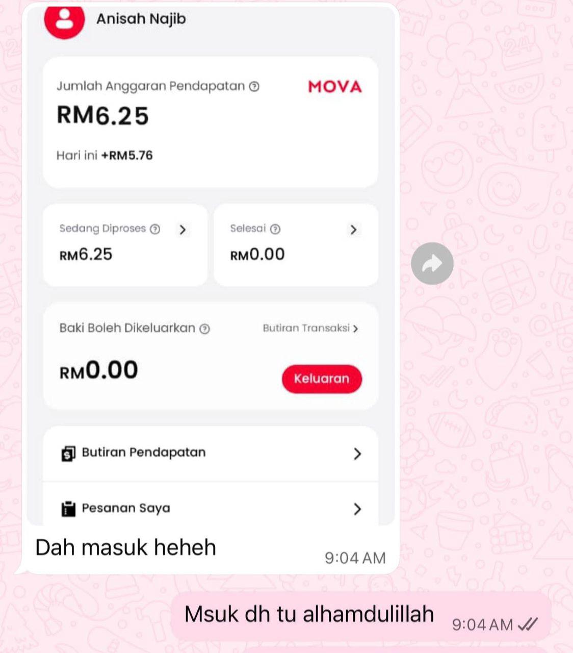 ➜ Bila barang dah diterima, cashback akan ambil masa untuk diproses sebab kita perlu tunggu Shopee/TikTok release payment. Mova hanyalah third party.