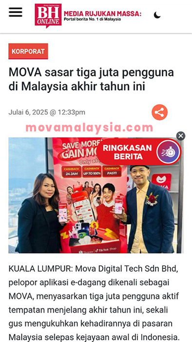 MOVA bukan penipuan. MOVA ialah sebuah platform yang menawarkan pulangan tunai (cashback) untuk pembelian anda di Shopee dan TikTok.