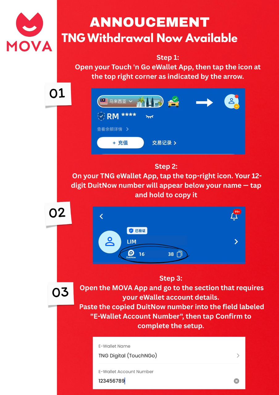 We’re excited to announce that Touch ‘n Go (TNG) is now available as a withdrawal option! 💸